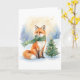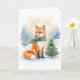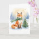 Cartão Winter Fox with Green Scarf and Christmas Tree