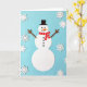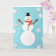 The card looks like a peaceful winter day, with its simple and elegant design. The snowman's details, like the hat and scarf, make it cheerful and inviting. The mix of cool blues and warm accents make it feel cozy and joyful. It's perfect for spreading holiday cheer with its artistic simplicity and colorful touches!