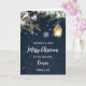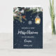 Feliz Natal para um cartão de primo com folhagem de inverno rústica e um fundo de neve rural.