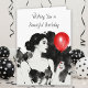 A birthday card for a woman, friend or sister. Funny aging sarcasm. You’re not getting old—you’re just becoming a classic." Cute birthday quote for her. Black and white graphic of a woman holding a red balloon.