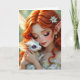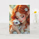 A birthday card for any girl or woman. On the front is a beautiful red haired fairy holding her ittle white dragon with purple chibi eyes. Inside it wishing someone a magical birthday and also has a surprise coloring page.