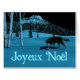 Um lobo caminhando sobre neve duro-crusta à noite; um pico coberto por árvores no fundo. A luz da lua reflete sobre neve e latido pálido de pássaros. Os olhos do lobo também brilham com o luar refletido. O texto francês que lê "Joyeux Noё l" aparece em azul e branco brilhantes. A qualidade refletiva dos olhos de muitos animais se deve ao tapetum lucidum (latim: "tapeçaria brilhante; calçada"), uma camada de tecido imediatamente atrás da retina, que reflete a luz através da retina aumentando a luz disponível aos fotoreceptores do olho. A existência de um tapetum lucidum contribui para a excelente visão noturna de muitos animais que trabalham à noite, como os carnívoros noturnos e as criaturas do mar profundo.