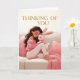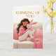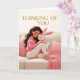 Cartão Woman Hugging Bunny on Couch Thinking of You