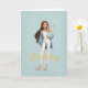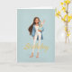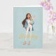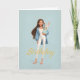 Cartão Woman in Blue & White w/ Cute Bunny Bday