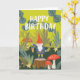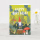 A ilustração temática verde-branco e floresta vermelha, desenhada por Shelby Allison, com um pequeno gnomo, cogumelos, flores e folhagem.