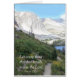 Snowy Range, localizado no lindo sudeste do Wyoming, tem picos granitos que se elevam majestamente ao céu azul de verão. Muitas vezes simplesmente chamado Os Neves pelos moradores, este é um movimento cênico favorito para turistas. No fundo do pico está o lago Marie. O pico mais alto é o Arco de Medicina, que sobe 12.013 pés. Uma trilha vai do lago Marie até o pínus e rochas até perto do topo do pico da montanha. Esta fotografia foi tirada na descida ao lago no final do verão. A frente do cartão tem as palavras inspiradoras do Salm 150:6, que diz "Que cada coisa que respira elogie o Senhor".