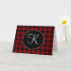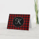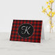 Cartão de saudação de Xadrez de Monograma Vermelho e Búfalo Preto com Script de solteiro