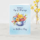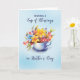Este cartão de Dia de as mães religioso apresenta uma bela equipe de aquarela cheia de flores vibrantes, simbolizando calor e amor. Uma lavagem azul suave no fundo adiciona um toque pacífico. A mensagem principal, A Cup of Blessings on Dia de as mães, transmite votos sinceros por um dia cheio de alegria e graça. Dentro, a mensagem refletida expressa um apreço caloroso e conclui com uma benção especial, fazer-a perfeita para celebrar uma mãe ou qualquer mulher especial de fé. Este cartão é uma maneira maravilhosa de compartilhar amor e encorajamento espiritual no Dia de as mães.