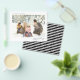 Felizes feriados de orçamento Adicione sua própria foto na frente do cartão de feriado mínimo moderno com listras simples de preto e branco. É o cartão de férias perfeito para enviar para a família e amigos.