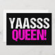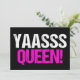 Yaasss Rainha. Yass Rainha é uma citação engraçada da cultura popular usada por garotas atrevidas e drag queens divas. Um cartão preto e rosa quente fofo.