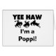 Yee Haw Eu sou uma camiseta Poppi, canecas, cartões, adesivos, botões de anúncio, keepsakes, e outros presentes com um cavalo de jardim e design de texto preto ou branco. Estes roupa de pia e presentes são perfeitos para avós pela primeira vez ou papoilas temperadas de uma nova chegada!