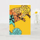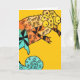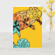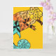 Perfect for a kid's birthday with original illustration design from watercolour and ink by artist Sacha Grossel of yellow, brown and blue chameleon against mustard yellow background. This quirky and special reptile is cute and bright. For lizard and reptile lovers everywhere.