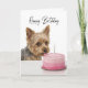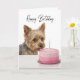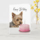 This funny birthday card features an adorable Yorkie caught in the act of taste-testing a colorful birthday cake with the playful message: “I inspected the cake. You're welcome.”