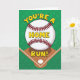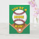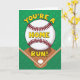This card celebrates love with a bold baseball theme. At the center is a large white baseball with bright red stitching, giving it a classic and familiar look. Across the ball, cheerful yellow lettering outlined in black reads, “YOU’RE A HOME RUN!” with the words arranged to lead the eye from top to bottom. Below the ball sits a detailed home plate in warm brown tones, grounded on a rich green field. Subtle heart shapes are scattered across the grass, adding a sweet touch to the sporty scene. The mix of bright colors and thoughtful details turns a well-known baseball phrase into a heartfelt message of admiration and affection.