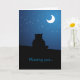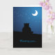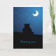 "Sentido sua falta... dia e noite." Um cartão de saudação de amor com ilustração fofa de um gatinho no telhado olhando para o céu estrelado e a lua. Personalizável, pode ser usado em várias ocasiões e você pode personalizá-lo com seu próprio texto personalizado.