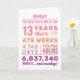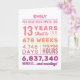 Personalized “You Have Been Loved For 13 Years” birthday card featuring milestone numbers—years, months, weeks, days, hours, and minutes. Add the recipient’s name for a custom touch and edit the inside message to make it your own. A unique, heartfelt birthday card perfect for a 13th birthday milestone celebration.