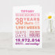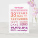 Personalized “You Have Been Loved For 38 Years” birthday card featuring milestone numbers—years, months, weeks, days, hours, and minutes. Add the recipient’s name for a custom touch and edit the inside message to make it your own. A unique, heartfelt birthday card perfect for a 38th birthday celebration.