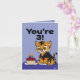 This adorable birthday card is for the just-turned 3-year old! It features a happy birthday tiger cub eyeing a birthday cake. Inside with the greeting is an image of the tiger cub waving hello. The closing can be changed from "love" to a different word or phrase. Help a 3-year old enjoy a special birthday that much more with this card.