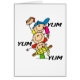Yum Yum os t-shirt, os cartões, as canecas, as sacolas, as etiquetas, e outro do design do verão Yum Yum os artigos do verão que caracterizam alguns colam miúdos em um piquenique do assado do quintal! Cachorros quentes, sorvete, e espiga de milho. Que podia ser melhor?