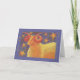 Aries o carneiro se coloca contra um céu noturno cheio de estrelas ouros. Sinal de fogo, 21 de março - 20 de abril (pode haver variação nas datas). Cartão de saudação com um design personalizável de ouro, laranja, roxo e azul na frente para você personalizar com seu próprio texto, imagens e ideias e dentro de 'Feliz Aniversário' escrito. Um lápis de cor original e desenho de tinta metálica de Jess Perry.