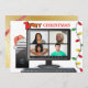 Zoomy Natal Video Conference Call Satire. A pessoa está sozinha no vídeo. Piada é Sim Oui Si Ja (sim, nós vemos você). E a foto se repete para mostrar a mesma pessoa. Muito engraçado e atual. Amplie a pessoa e o tempo aproxima-se. Pode ser usado para qualquer sexo e qualquer idade.