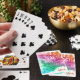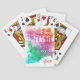 Um baralho de cartas colorido com “A magia acontece aqui”