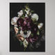 Um tema floral escuro exuberante e decadente com flores sombrias, incluindo peônia, ranúnculo e anêmona em rico roxo e branco.