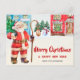 Este Papai Noel tem o tema Feliz Cartaz de Natal com Papai Noel com árvore de Natal e algumas casas decoradas com boneco de neve entre eles. A carta também tem palavras de "Feliz Natal e feliz ano novo" na frente - esses textos podem ser alterados. Você pode escrever sua nota personalizada no verso ou excluir o texto e escrever manualmente o texto após a impressão. Todos os textos podem ser alterados - use o menu "personalizar este modelo".