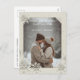Convide sua família e amigos mais próximos para uma festa íntima depois de seus votos privados ou casamento na prefeitura. Enviem cartões postais de férias e, ao mesmo tempo, convidem-nos para um janto de casamento aconchegante. Este cartão-postal de férias personalizável com um romântico design de neve decorado por delicados flocos de neve e a doce frase "O Forever começa este inverno." Adicione sua foto favorita e personalize-a com nomes, datas ou uma mensagem sincera. Perfeito para casal querendo um casamento íntimo este inverno.