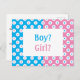 Este convite postal não apenas anuncia seu evento especial; ele define a palco para o momento emocionante em que o sexo de seu bebê é revelado. A design da frente que chama os olhos mostra a pergunta queimada "Menino? Menina?" contra um belo pano de fundo de bolinhas cor-de-rosa e azuis. E ao usar o formato de cartão postal, você economizará tempo e dinheiro em envelopes e postagens enquanto garante que seus hóspedes recebam um charmoso convite de atenção. Então, por que se conformar com o comum quando você pode fazer seu gênero revelar a festa extraordinária com este convite postal divertido e prático?