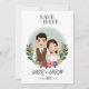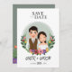 Cartão de convite de casamento da noiva e do casal bonitinho personagem de desenho animado.Informações gerais das flores para celebração de eventos