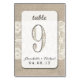 Este cartão de número da mesa de casamento rústica apresenta um fundo de arromba e renda com a habilidade de personalizar o cartão com seus nomes e data de casamento. Coordenadamente perfeitamente com a nossa coleção de casamentos de arromba e rendas.