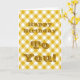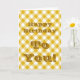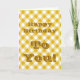 Cartão de aniversário amarelo xadrez