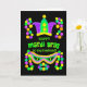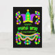 Um Cartão de Saudação Mardi Gras de cor vibrante para um Marido, com uma coroa, uma máscara e uma corda de miçangas em verde brilhante, roxo e amarelo num fundo preto. Você pode mudar a mensagem de dentro, se quiser.