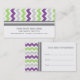 Os cartões de visitas da nomeação do salão de beleza, do planejador de evento ou dos termas em ziguezagues elegantes e do vintage da viga listram o teste padrão em roxo, em verde, cinzas e branco. Customizável com seus detalhes, na moda e contemporâneo do contato. Contacte-nos para uma cor feita sob encomenda.