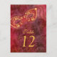 O número da mesa neste ornamentado e cartão elaborado do número da mesa do casamento do mascarada ou do carnaval do Victorian de Borgonha e de ouro ou da ocasião especial é inteiramente customizável. Para mudar o número da mesa use a opção do personalizamento. Para estes, você deve mudar o número da mesa, mudar a quantidade a 1, e então adicioná-la a seu carro e repetir o processo para todos os cartões que da mesa você precisa. Para umas mudanças mais extensivas ao cartão que inclui mudanças à pia batismal, a cor da pia batismal, o tamanho de pia batismal, ou a colocação do texto, usam a opção da personalização. As características de design uma máscara extravagante com penas. Faria um cartão agradável da mesa para todo o evento da bola de mascarada que inclui eventos incorporados, fundraisers, eventos caritativos e doce 16 aniversários.