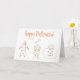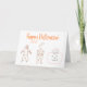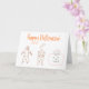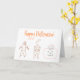 O desenho de um espantalho, de um gato e de um gato numa abóbora, com o Feliz Halloween é impresso em cartões de saudação. Dentro diz, "Aqui está uma abóbora para você decorar," junto com uma abóbora vazio para adicionar um rosto também.