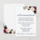 Informe a seus convidados as informações para acomodações do hotel com nossos cartões de inserção de acomodações de casamento com flores em tons rústicos de azul-marinho, marsala e rosa. A redação é completamente personalizável - se você precisar alterar a fonte, cor da fonte, tamanho ou a colocação das caixas de texto, basta clicar no botão "Clique para personalizar ainda mais" para alterar essas coisas. Certifique-se de verificar nossa grande seleção de itens coordenados, navegando pela Coleção de Casamento Floral Azul-Marinho Rústico e Marsala!