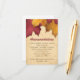 Cartões de acomodações de outono (cartões de inclusão), projetados exclusivamente pela Artistically Invited, com folhas rústicas em burgundy e dourado ao longo da parte superior sobre uma ilustração de fundo dourada. Personalize esses cartões de acomodações de outono com seus próprios detalhes de acomodações personalizados para seus convidados. Convites combinando estão disponíveis. Esses cartões de inclusão são perfeitos para seus casamentos de outono com esquemas de cores burgundy e dourado.