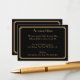 Cartões de visita de acomodações de casamento em ouro e preto art déco do Grande Gatsby com texto personalizável