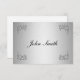Elegantes cartões de acompanhamento em metalizado prateado e redemoinho branco. Há belos cartões de acompanhamento que serão usados para informar aos seus convidados a mesa designada.