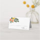 Cartões de acompanhamento com ramos de folhagem com clementinas e limões. Escreva os nomes dos convidados e números das mesas.