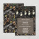 Cartões de Acompanhamento de Recepção de Casamento Caça Camuflada em Pote de Mason - para informações de hotel/recepção - apresentam potes de mason iluminados pendurados com um fundo de caça camuflada na frente e verso com uma caixa de texto de aniagem marrom na frente.