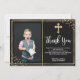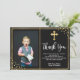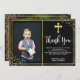 Cartões de agradecimento de batismo e batizado simples e elegantes em dourado e preto. Envie agradecimentos a familiares e amigos com este cartão religioso personalizado moderno e simples. Ele apresenta um script "Obrigado" escrito à mão, em torno de uma moldura dupla em folha dourada falsa e confetes dourados em fundo preto. Este lindo cartão de agradecimento com foto moderno também será perfeito para cartão de agradecimento de batismo / batizado / cerimônia de nomeação / confirmação e comunhão solene para menino ou menina. #3354