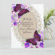 Estes belos cartões de agradecimento de casamento em renda branca apresentam borboletas e flores roxas e rosas cor de creme. Perfeito para um casamento rústico no campo ou para uma celebração de casamento DIY. Muito elegante.