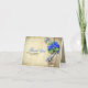 belos cartões de agradecimento com jarra de mason e flor azul escura para casamentos.