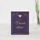 Este cartão de agradecimento de casamento tem belas cores roxas e douradas que são vibrantes e realmente destacam o tema do cartão. O cartão tem um contorno de uma paisagem urbana com uma lâmpada mágica dourada no centro com espirais saindo. Cartão muito bonito para agradecer aos seus convidados.