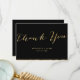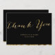 Convites de agradecimento de casamento elegantes em folha dourada com texto personalizável impresso em fundo preto