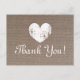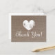 Cartões de agradecimento de casamento em juta com coração rústico. Design fofo para casamento country chic ou chá de noiva. Símbolo de amor vintage com tipografia elegante.