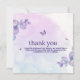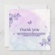 "Entre num mundo de encantamento com nossos cartões de agradecimento de casamento 'Enchanted', criados exclusivamente para o seu dia especial. Uma mistura fascinante de roxos profundos, delicados lábios de árvore e borboletas graciosas adornam cada cartão, evocando um sentimento de romance e maravilha. As ricas tonalidades de roxo simbolizam realeza e elegância, enquanto a presença sutil de lábios de árvore adiciona um toque de charme natural e mistério. Borboletas dançam pelo design, incorporando a alegria e a transformação que vêm com o amor e a parceria.